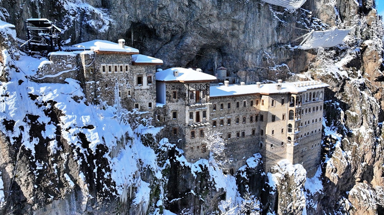 Beyaza bürünen Sümela Manastırı yerli ve...